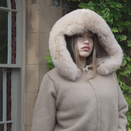 Meet Luna, our zip-up cardigan with fur lined hood, designed to offer luxury in every detail. Made with a wool blend and fox fur lining, this cardigan features a modern silhouette that seamlessly blends casual elegance with comfort.
